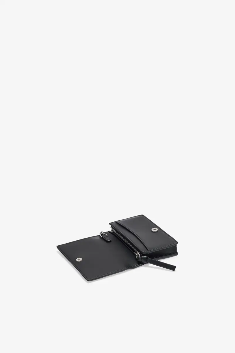 Deze kaarthouder heeft een puppyprint, een GANNI Butterfly-logo en een zilverkleurige sleutelring.