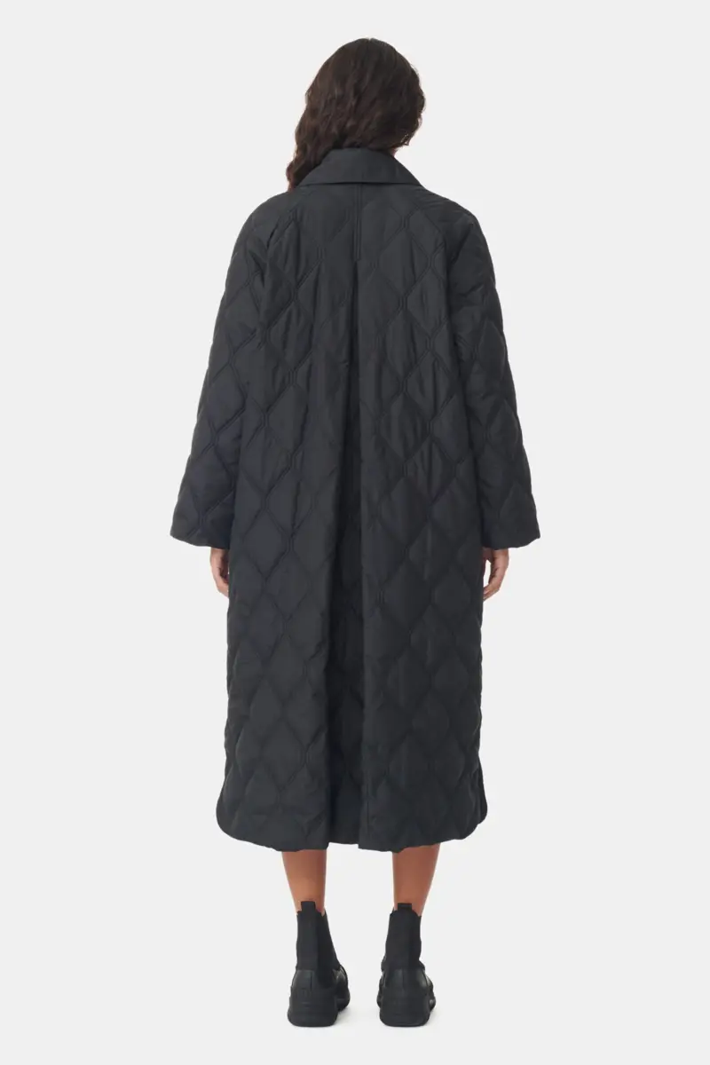 Deze Ripstop Quilt Coat is gemaakt van gerecycled polyester. De jas heeft een relaxte pasvorm en is voorzien van een kraag, een stevige ritssluiting, een asymmetrische knoopsluiting, zijzakken en een