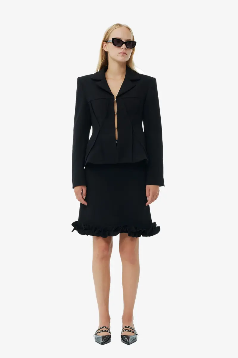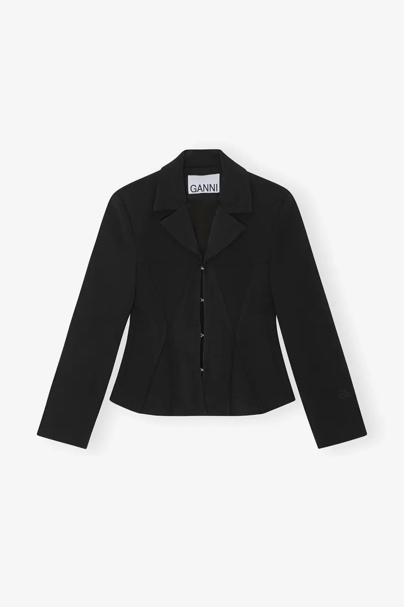 Deze blazer is gemaakt van gebonden crêpe en heeft een getailleerd silhouet. De blazer heeft een klassieke kraag en een sluiting aan de voorkant.