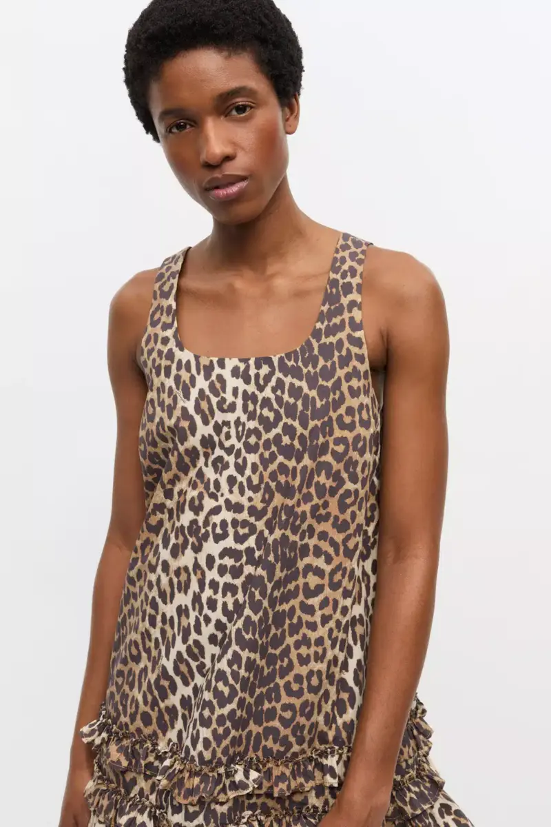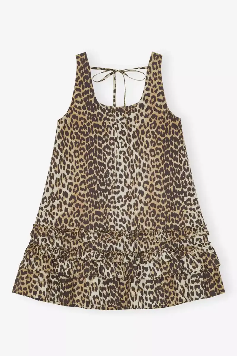 Mini-jurk van katoenpopeline met luipaardprint