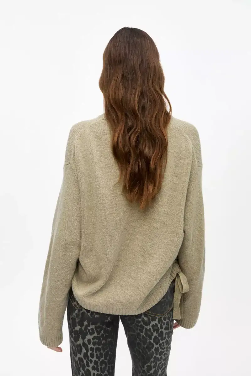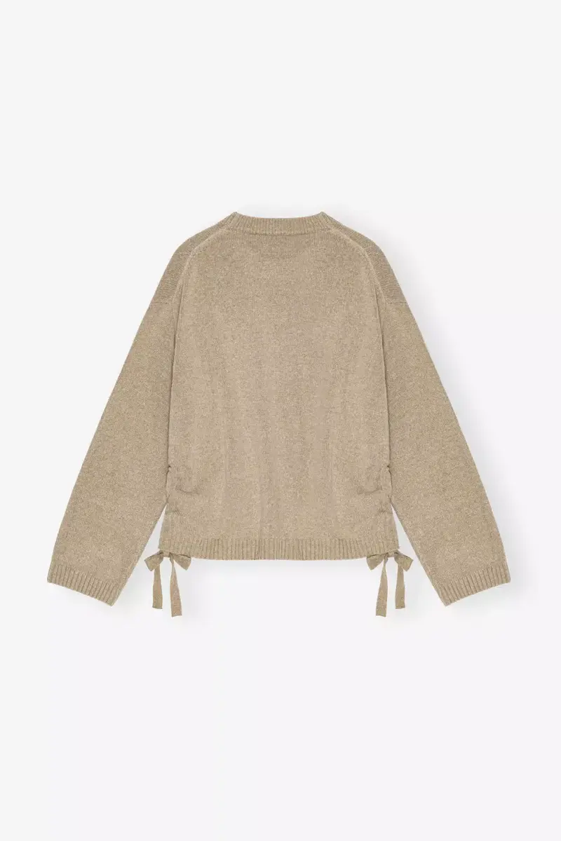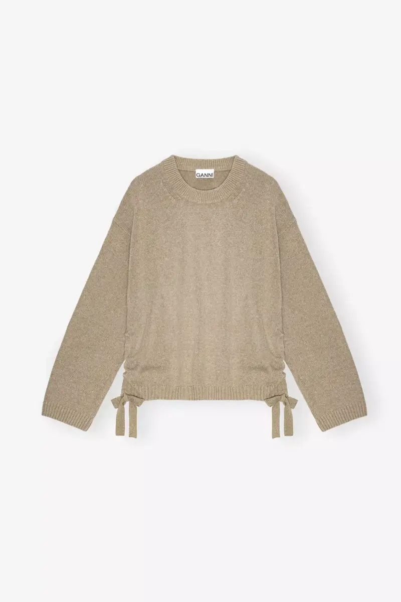 Deze trui heeft een ronde halslijn, lange mouwen, gerimpelde details aan de zijkanten en strikdetails.