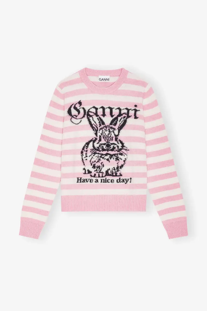 Gestreepte wollen trui met konijntjesprint