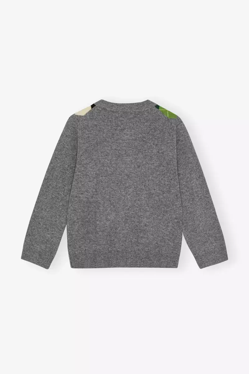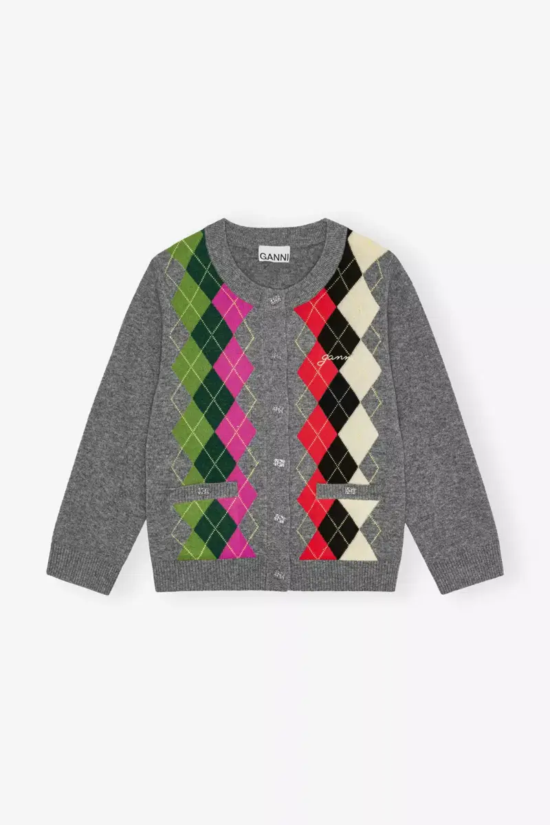 Dit vest heeft een geruit patroon in meerdere kleuren. Het heeft een zilverkleurige knoopsluiting, twee zakken aan de voorkant en een geborduurd GANNI-logo.