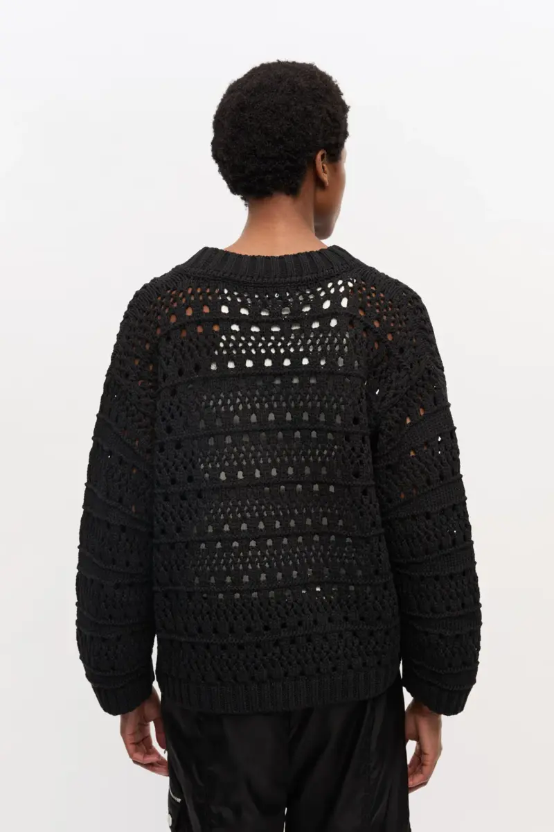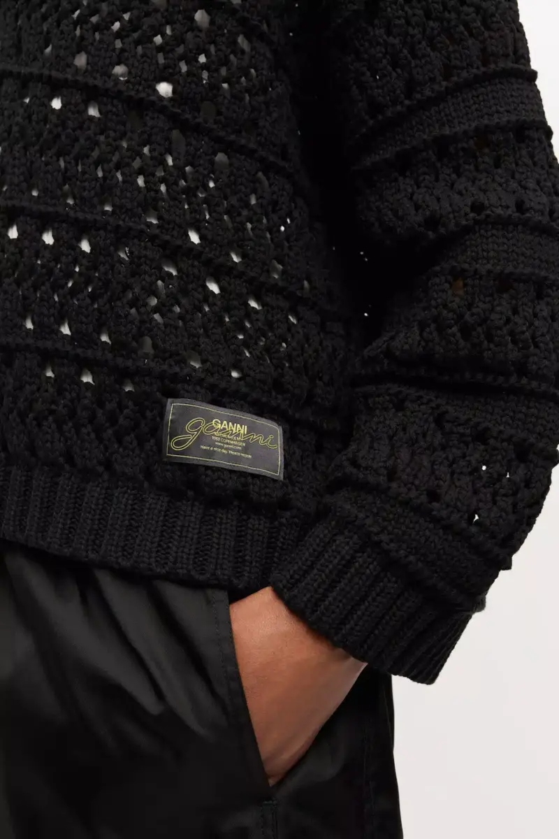 Deze trui heeft een V-hals met geribde details aan de hals, manchetten en zoom, en een GANNI-logopatch linksonder.