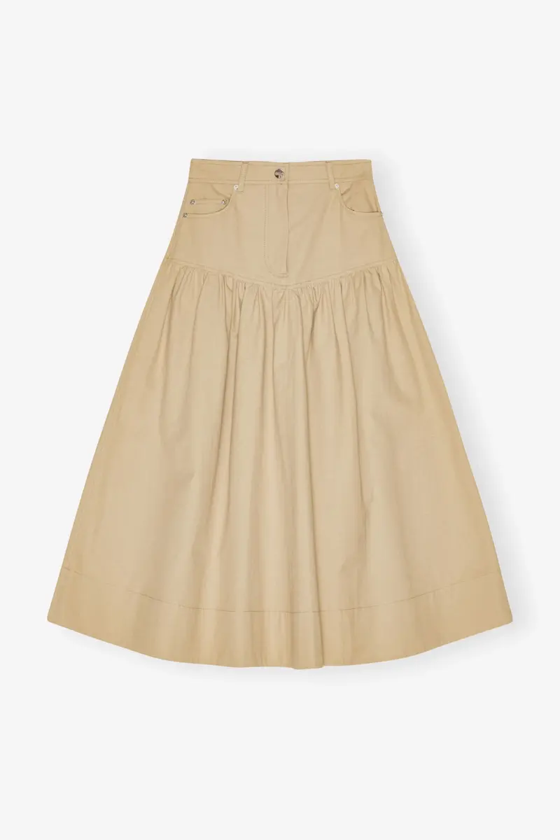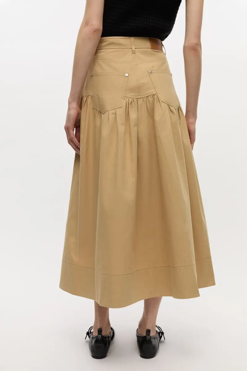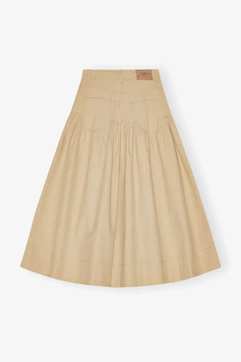 Deze rok heeft een ritssluiting en knoopsluiting, 5 zakken, een GANNI-logopatch en een verlaagde taille met ruches.
