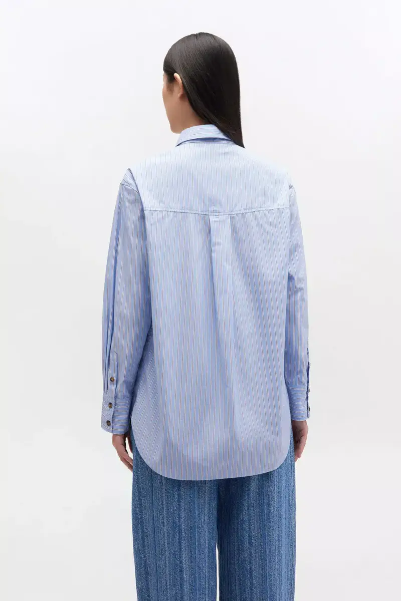 Dit overhemd heeft een klassieke kraag, knoopsluiting aan de voorkant, een borstzak en een GANNI-logo.