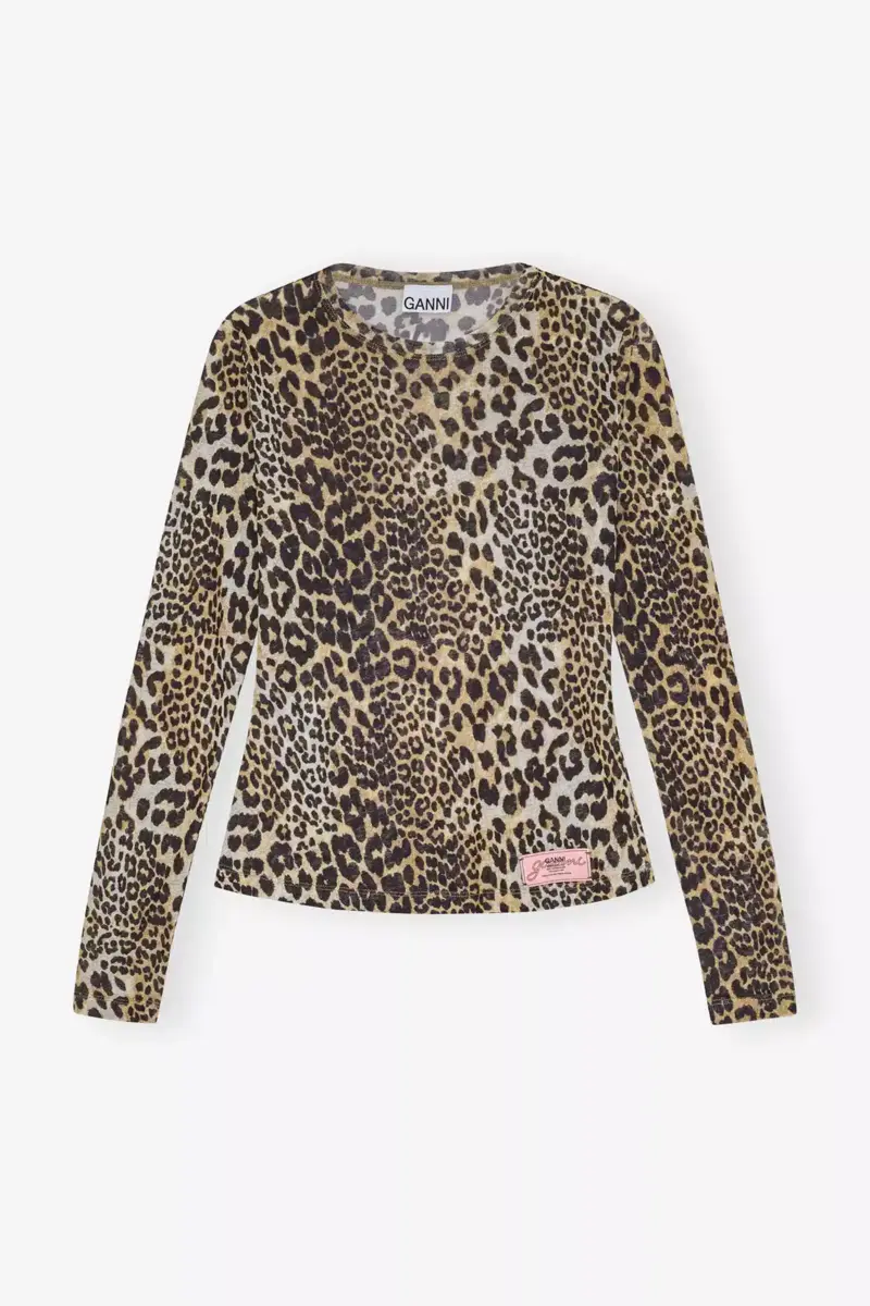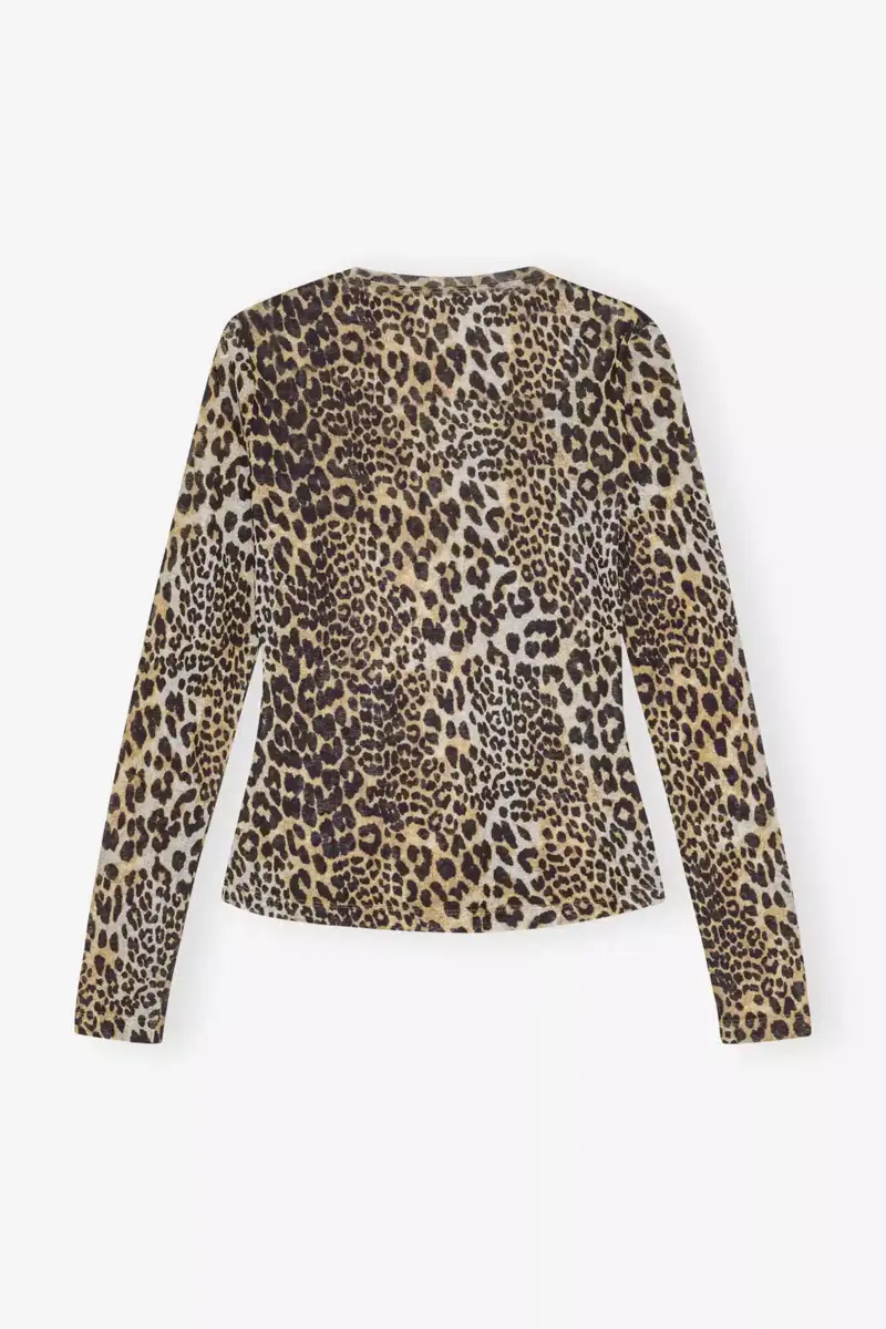 Deze bedrukte mesh top met lange mouwen heeft een luipaardprint. De blouse heeft lange mouwen, een getailleerd silhouet en een lichtgewicht ontwerp.