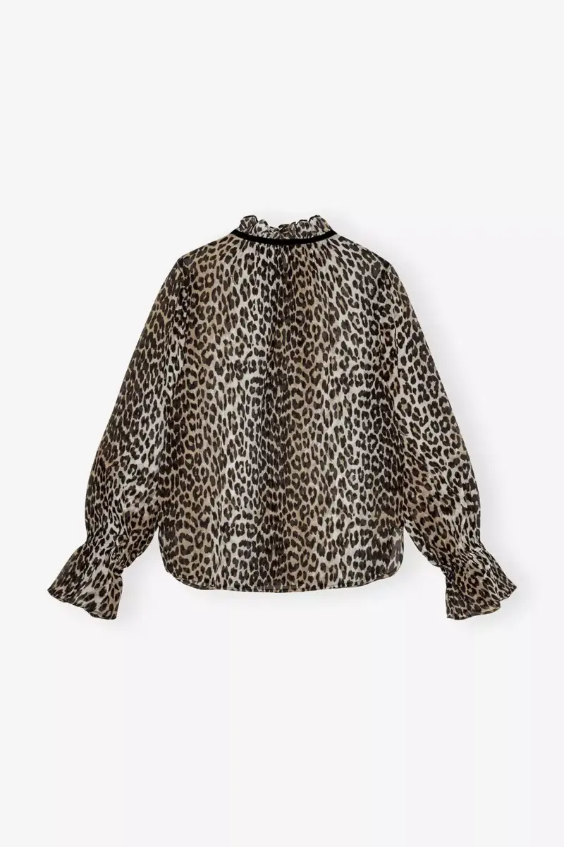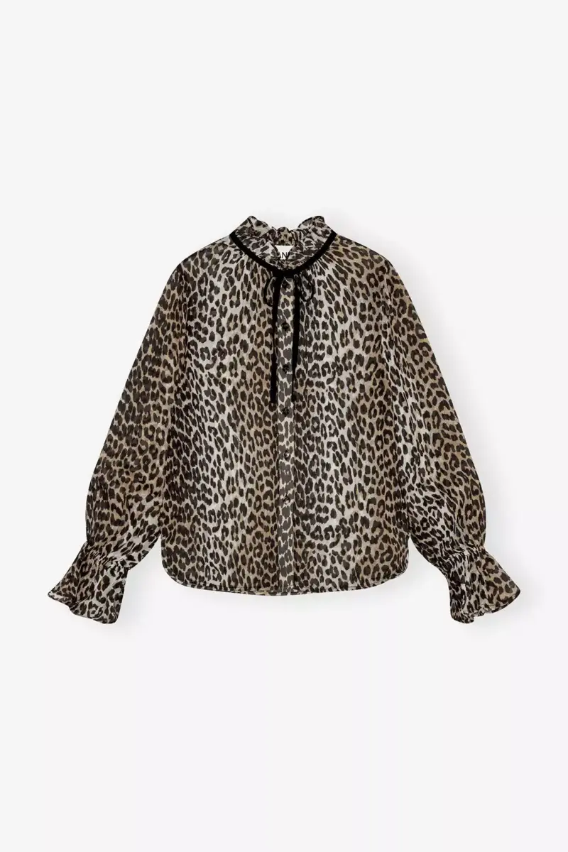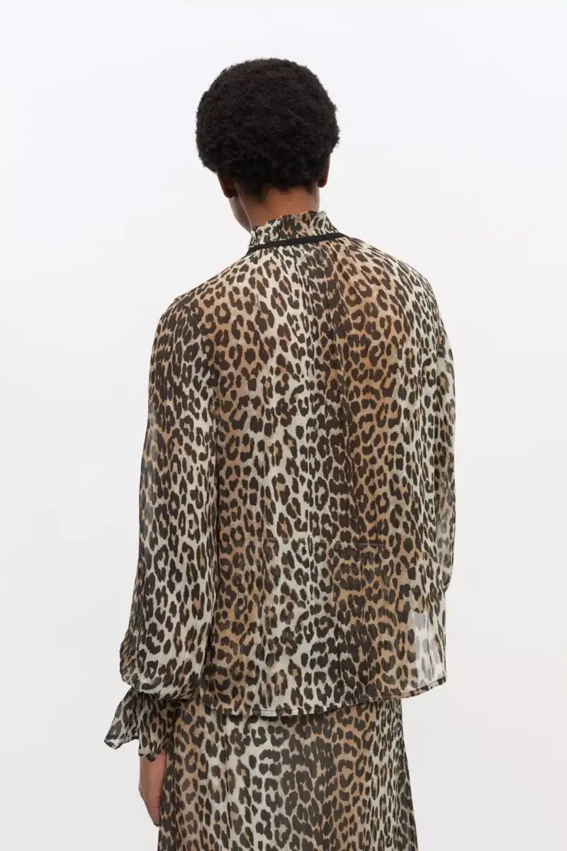 Chiffon shirt met luipaardprint en strikband