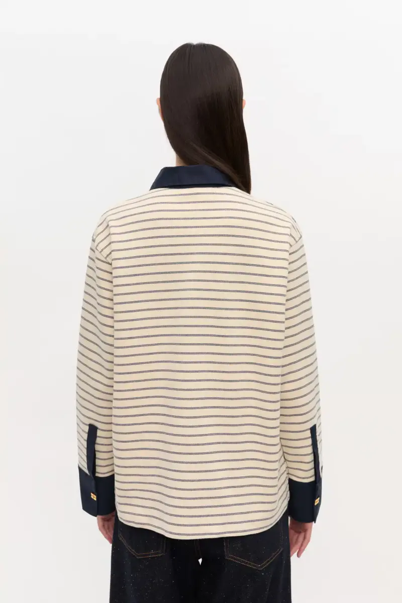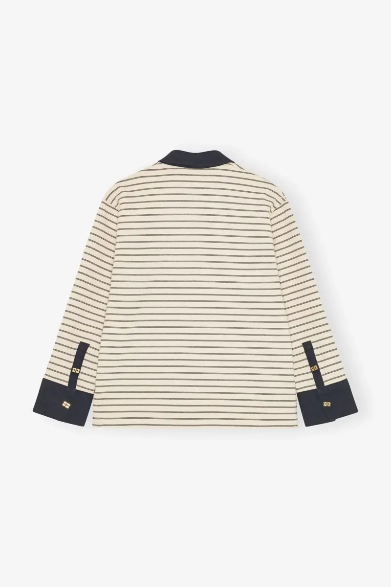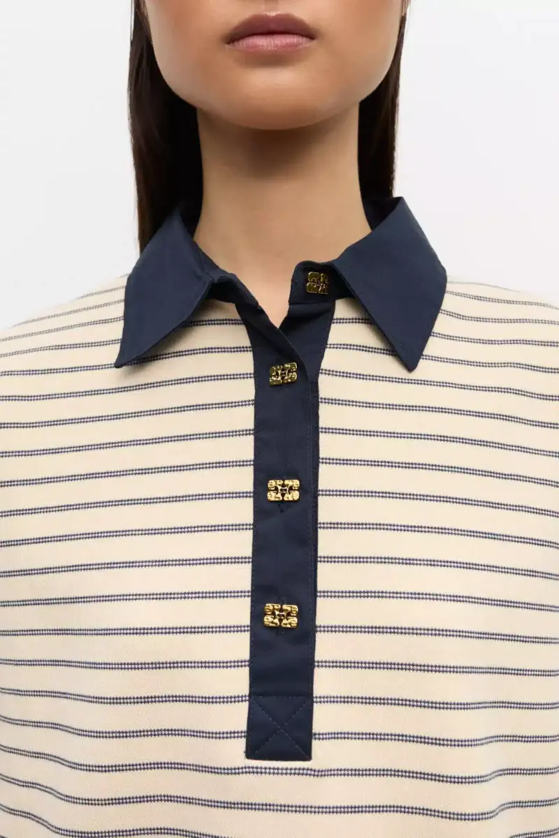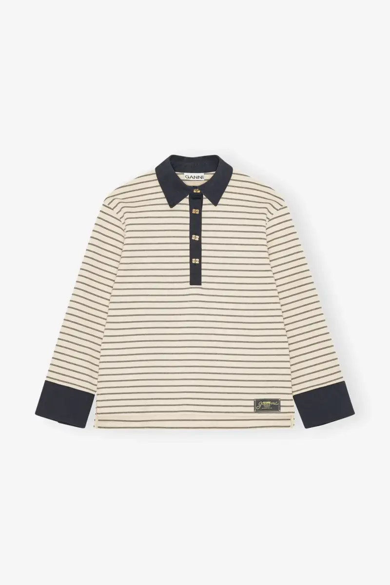 Deze polo heeft een gestreept patroon, een contrasterende kraag, goudkleurige GANNI Butterfly-knopen en een GANNI-logopatch aan de zoom.