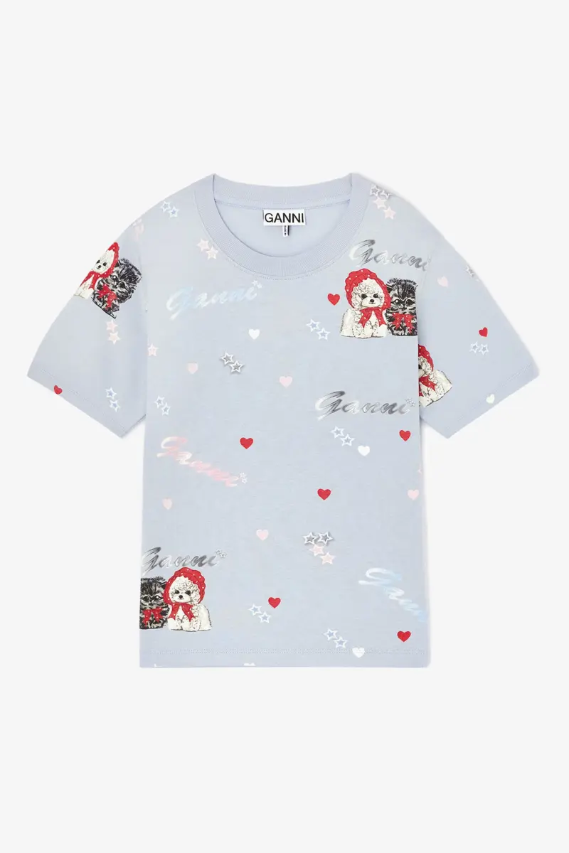 Dit T-shirt heeft een ronde halslijn, korte mouwen en een dierenprint met een GANNI-logo.