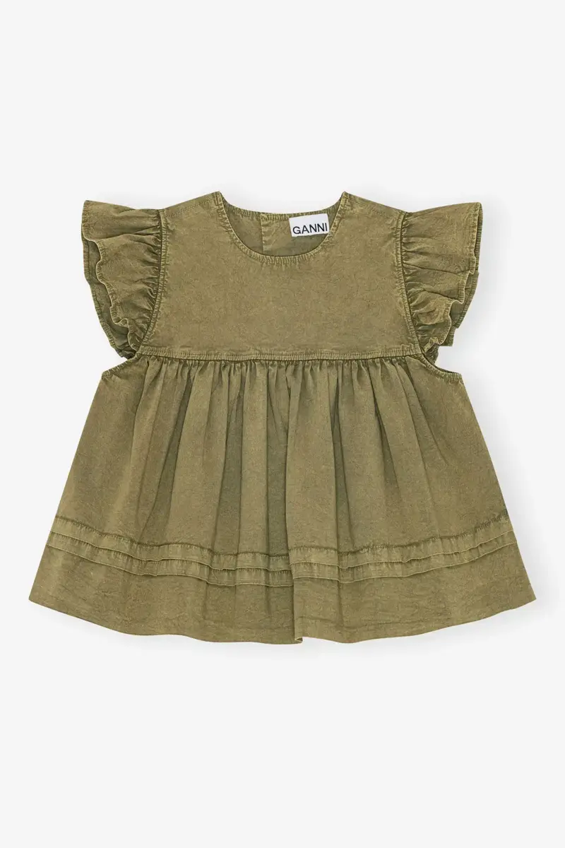 Groene gewassen katoenen top