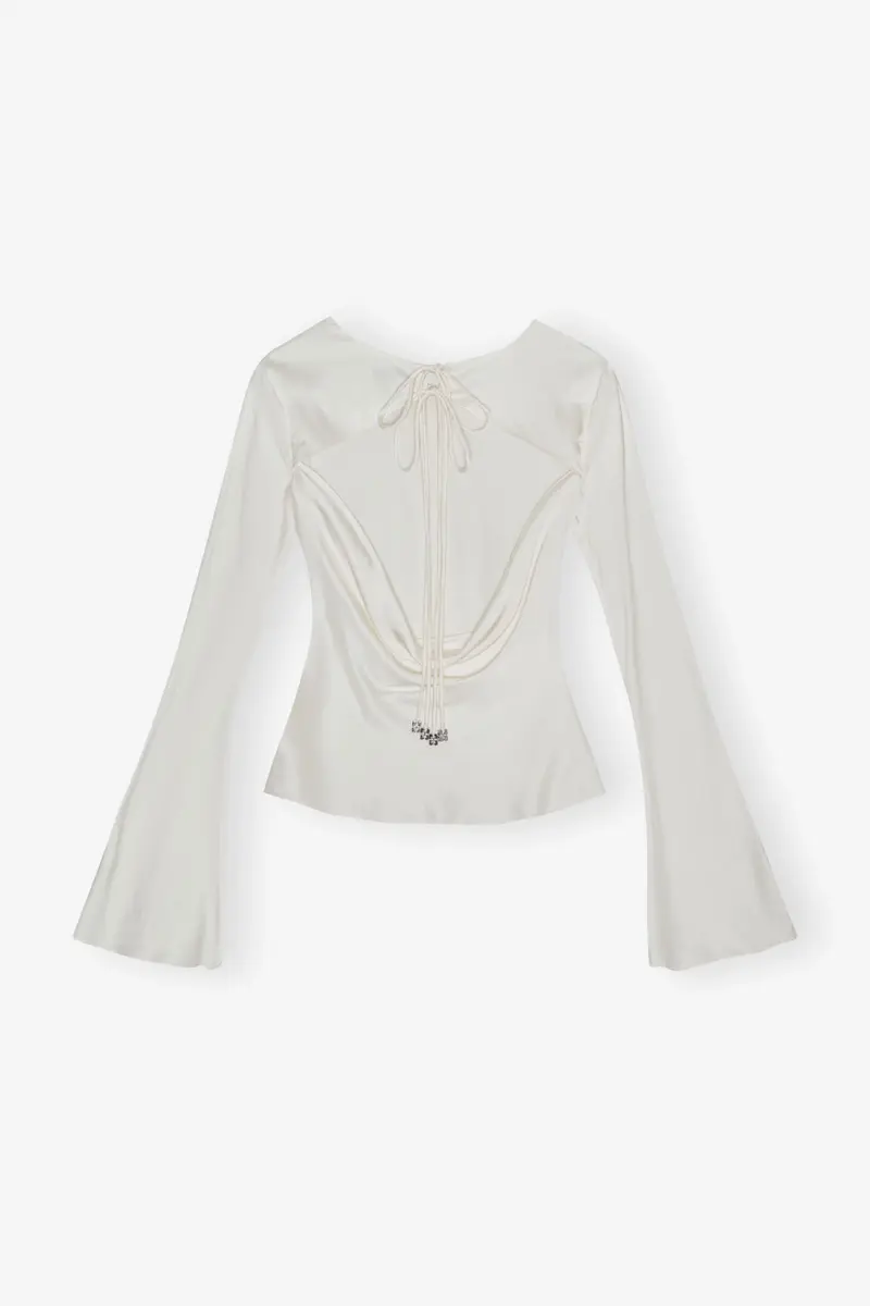 Deze blouse heeft een ronde hals, lange mouwen, een open rug en strikbandjes met een zilverkleurig GANNI Butterfly-logo.