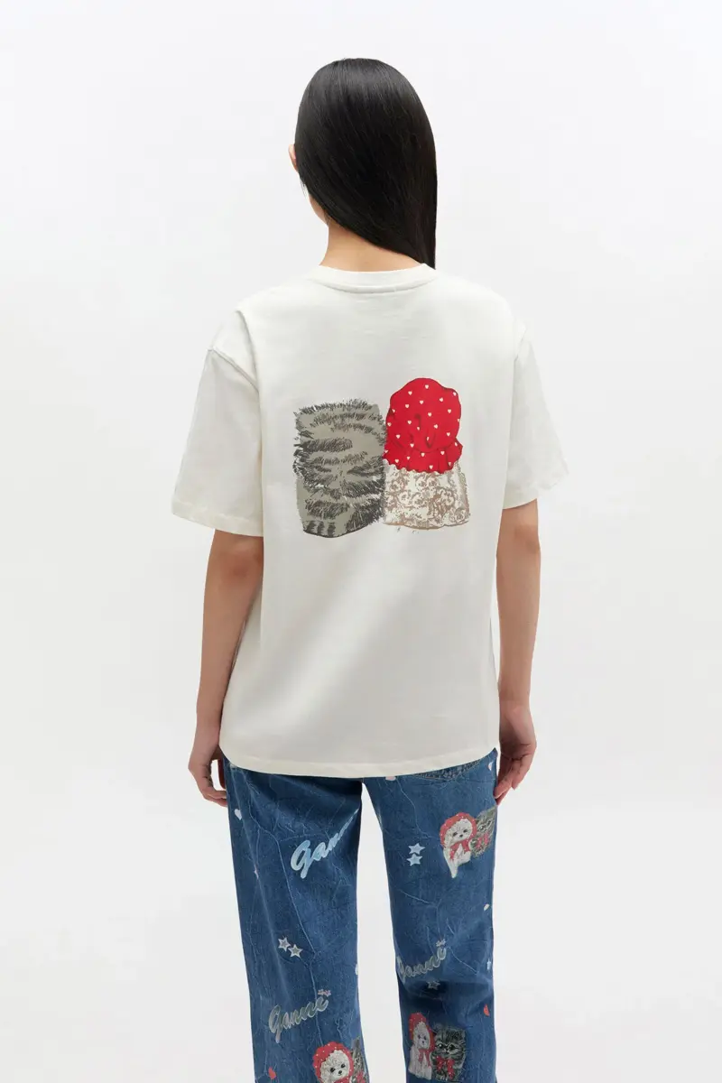 Dit T-shirt heeft een ronde halslijn, korte mouwen en een GANNI-logo. Het T-shirt heeft een dierenprint op de voor- en achterkant.