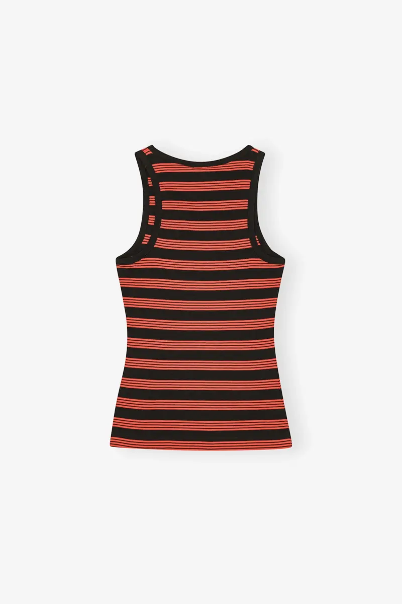 Deze top heeft een rood-zwart gestreept patroon, een racerback en een GANNI Butterfly-logo.