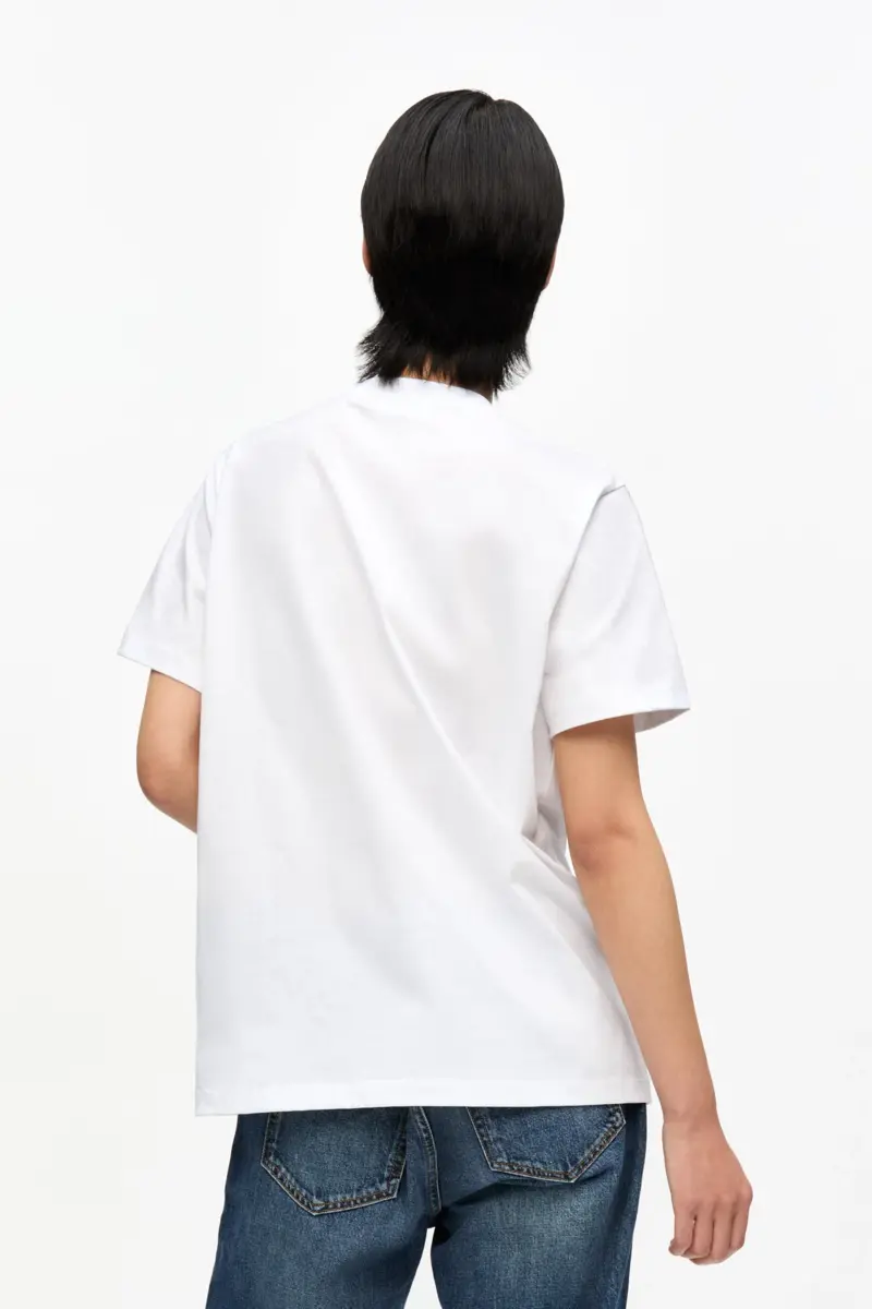 Dit witte basic katoenen jersey teddy relaxed T-shirt heeft een ronde halslijn, korte mouwen en een grafische GANNI-print.