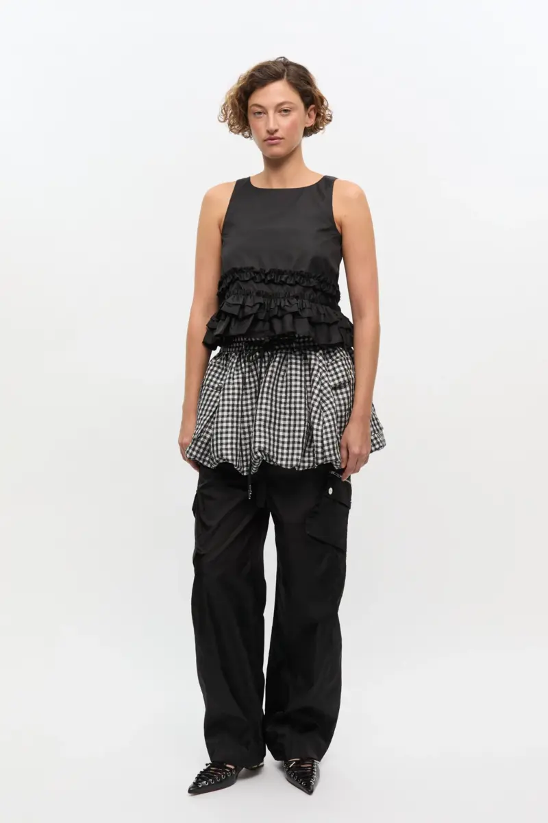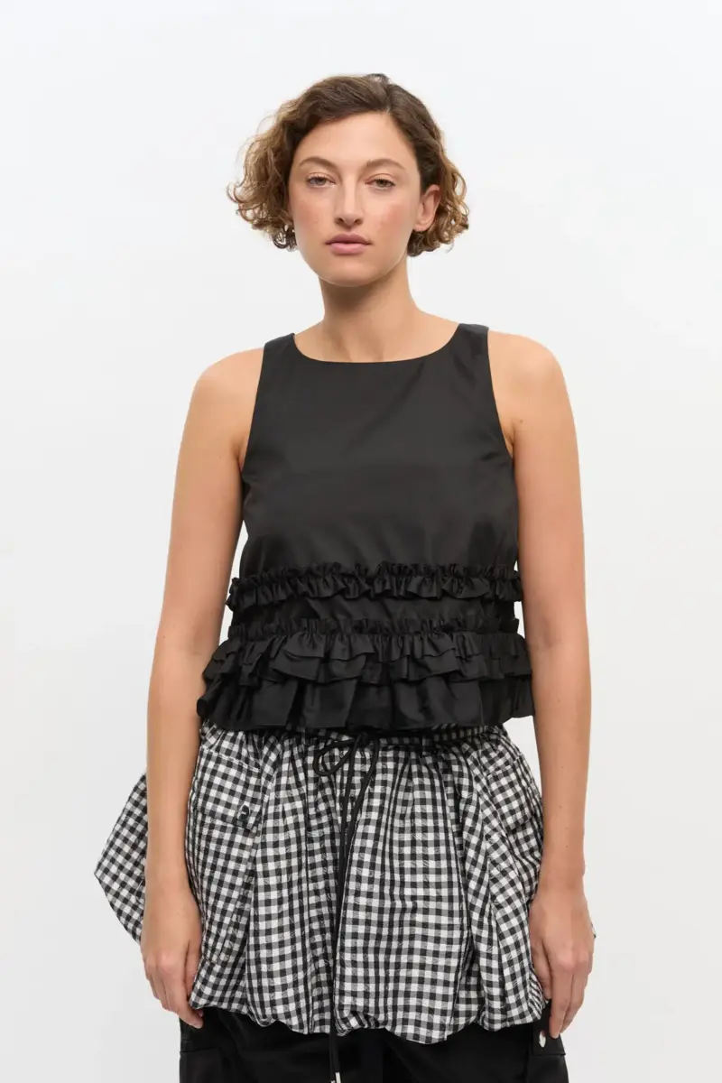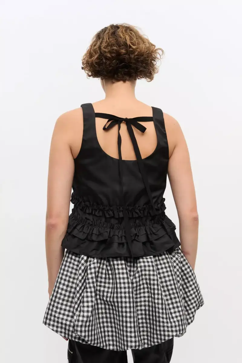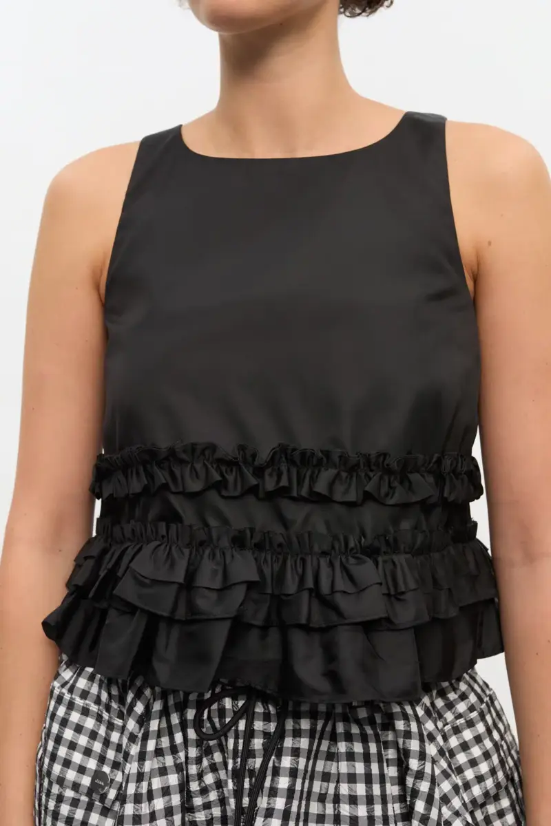 Zwarte nylon top met ruches