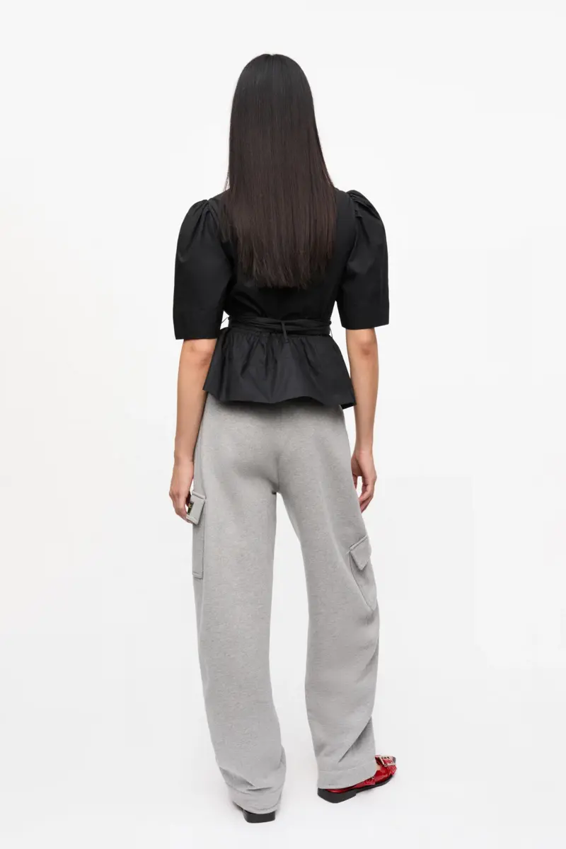 Zwarte stretchkatoenen blouse met strikbandjes
