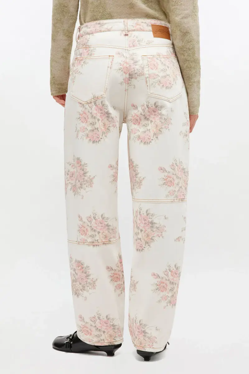 Deze jeans van denim met bloemenprint heeft een ritssluiting en knoopsluiting, vijf zakken, riemlussen en een GANNI-logopatch op de achterzak.