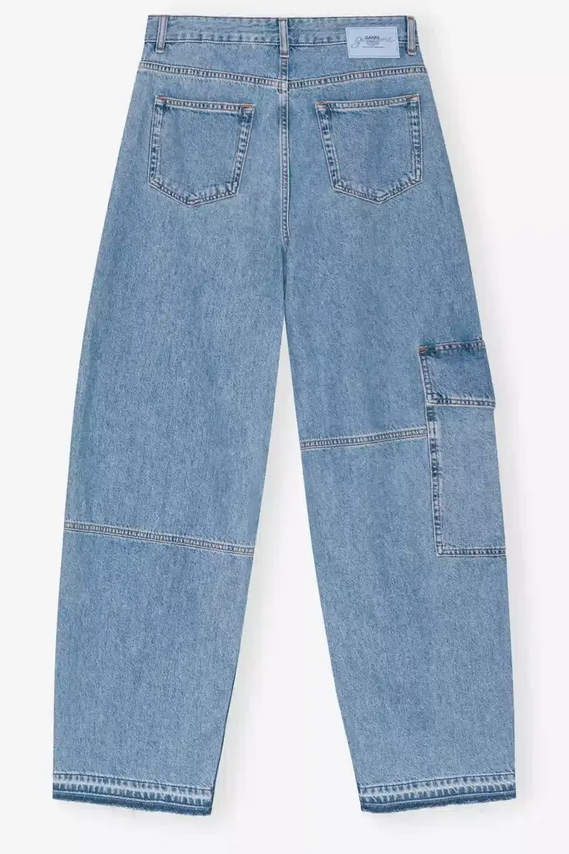 Deze jeans van lichtblauw denim heeft een ritssluiting met knoop, 5 zakken, riemlussen en een GANNI-logopatch op de achterzak.