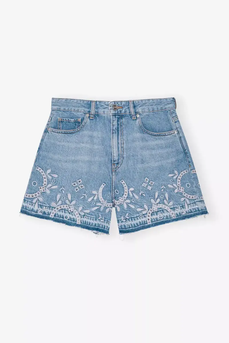 Deze korte broek heeft een ritssluiting en knoopsluiting, vijf zakken, riemlussen, een GANNI-logopatch op de achterkant en broderie anglaise-details.