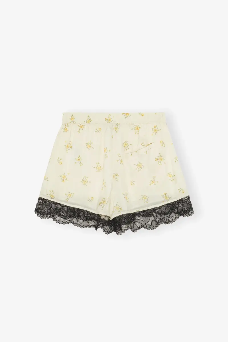 Deze korte broek heeft een elastische tailleband en een kanten zoom.