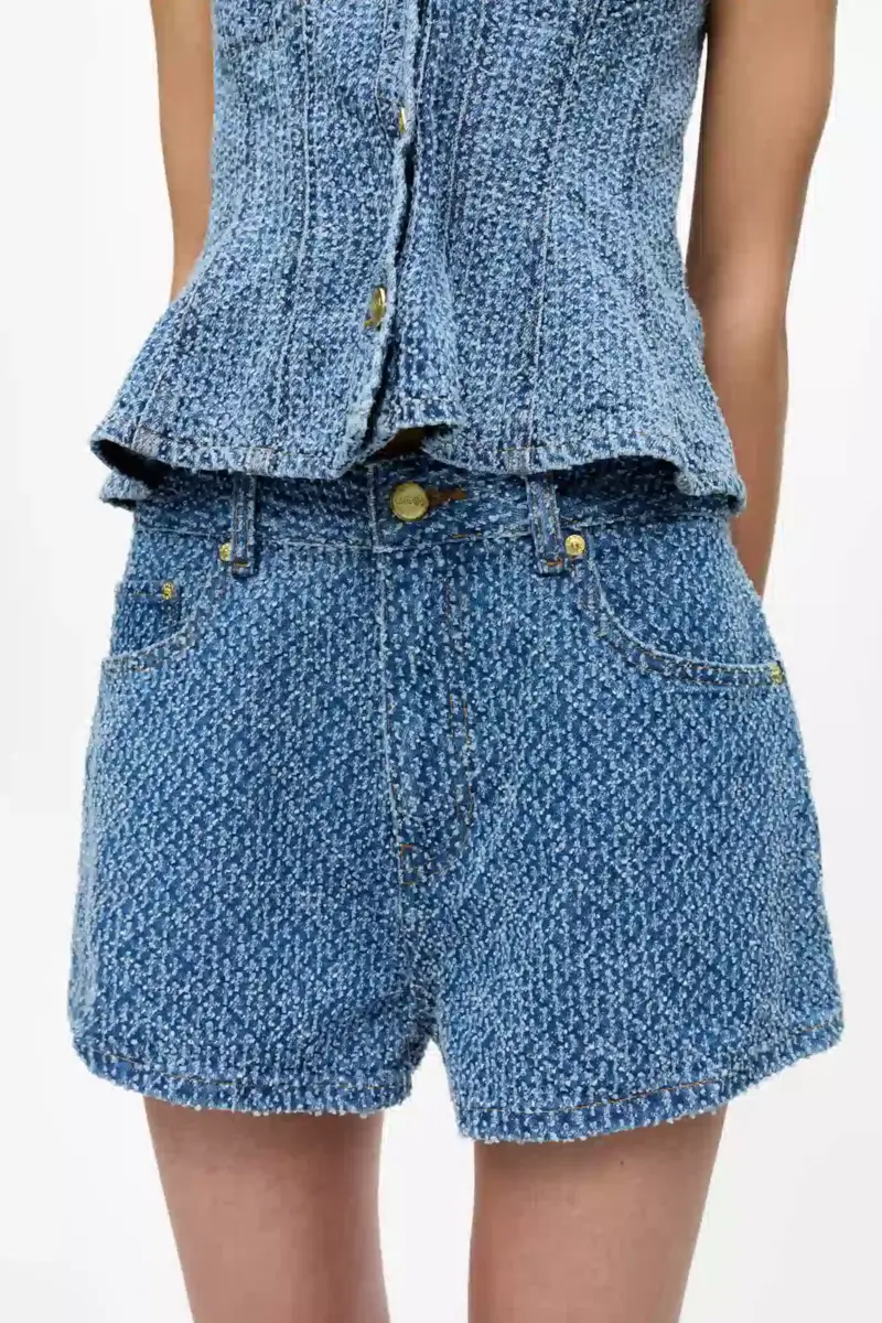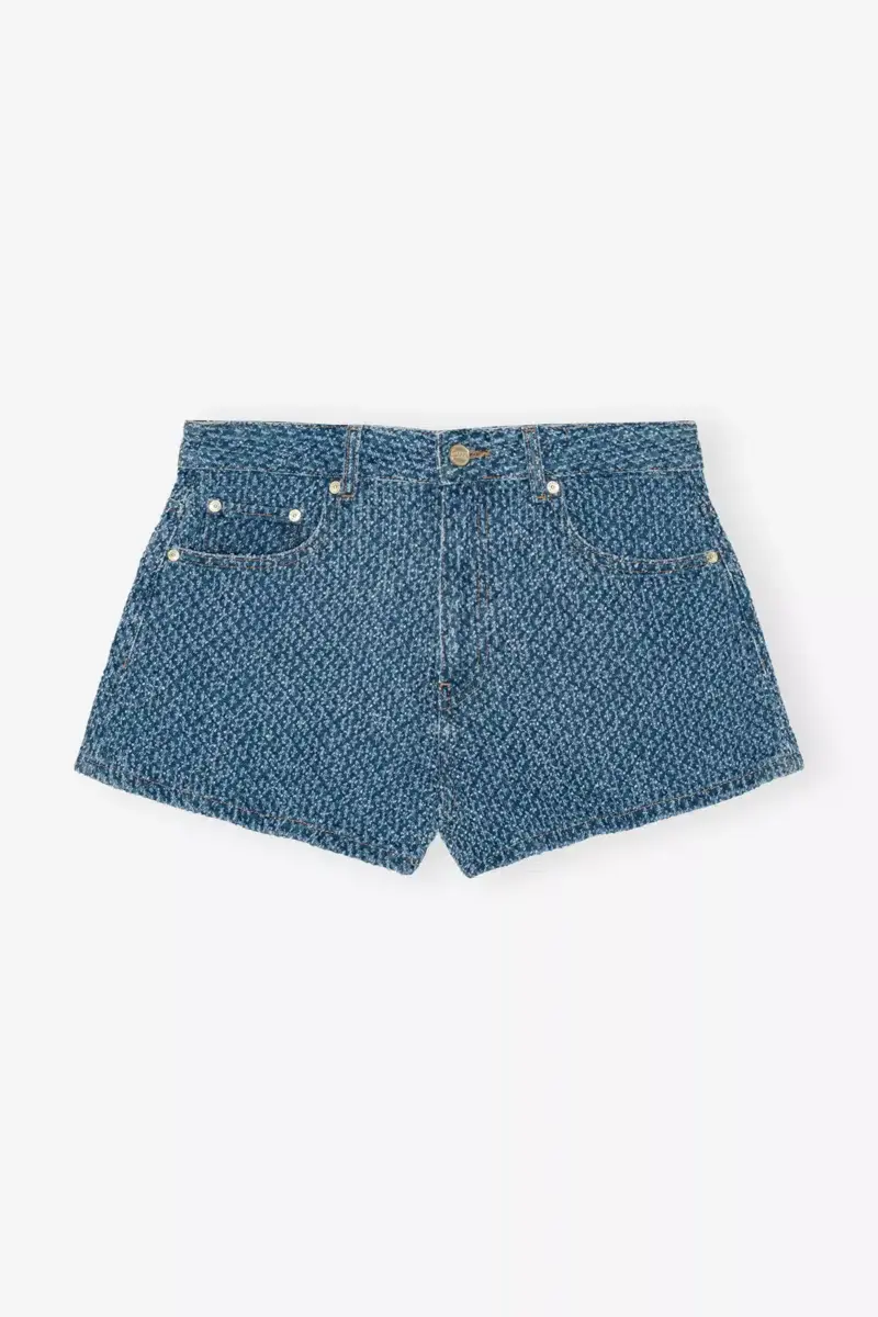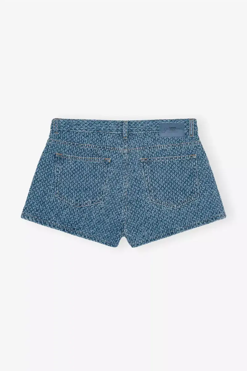 Deze korte broek van gestructureerde denim heeft een ritssluiting met knopen, 5 zakken, riemlussen en een GANNI-logopatch op de achterkant.