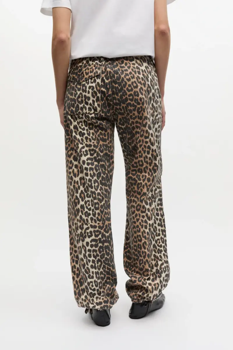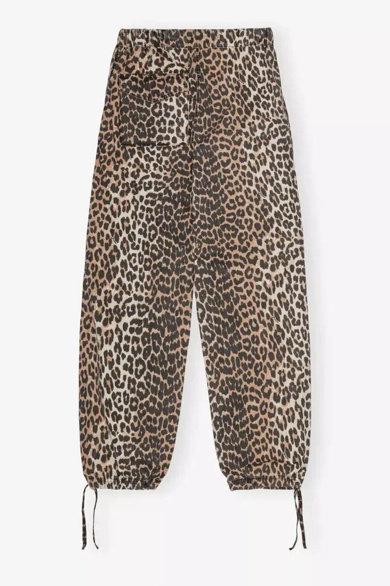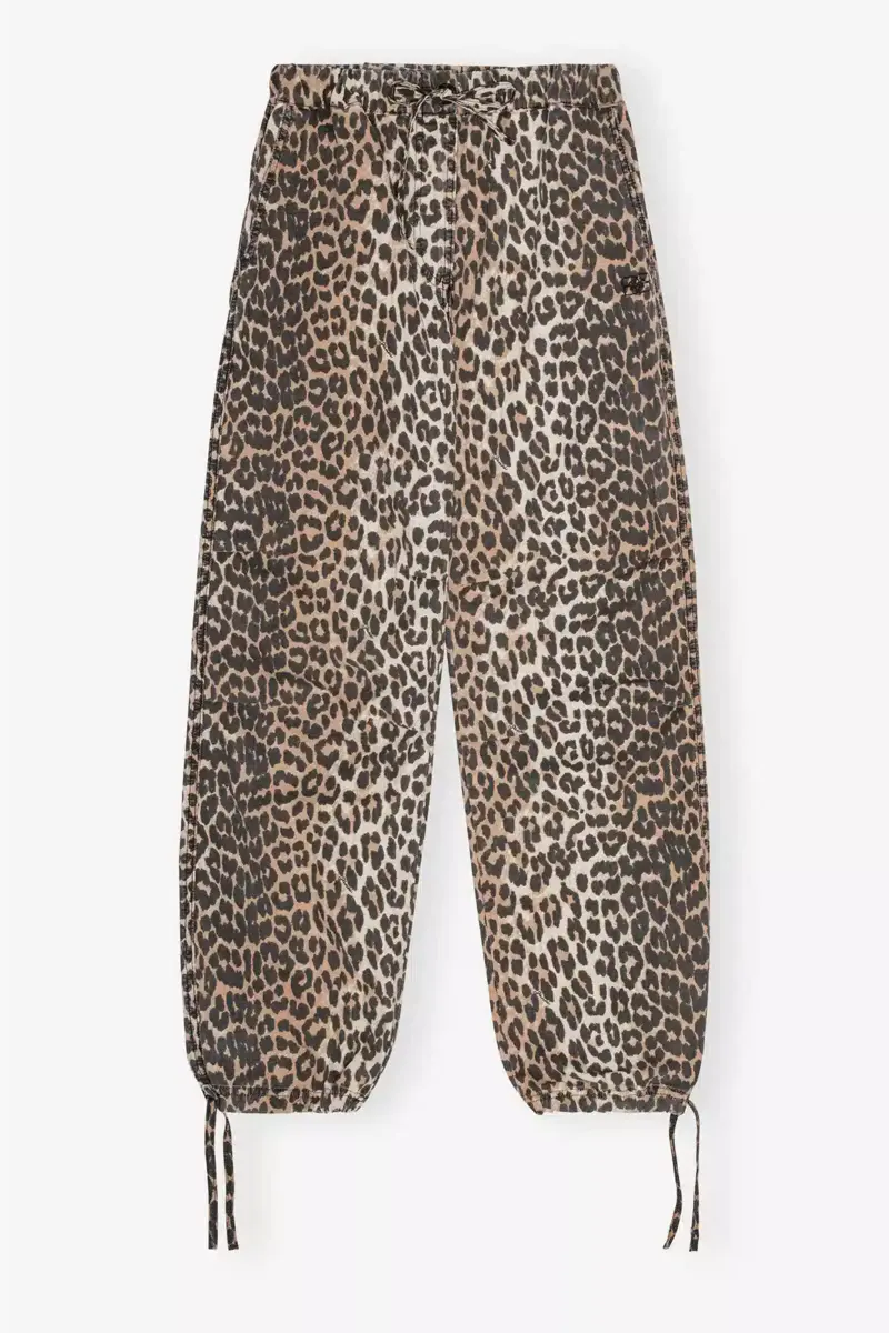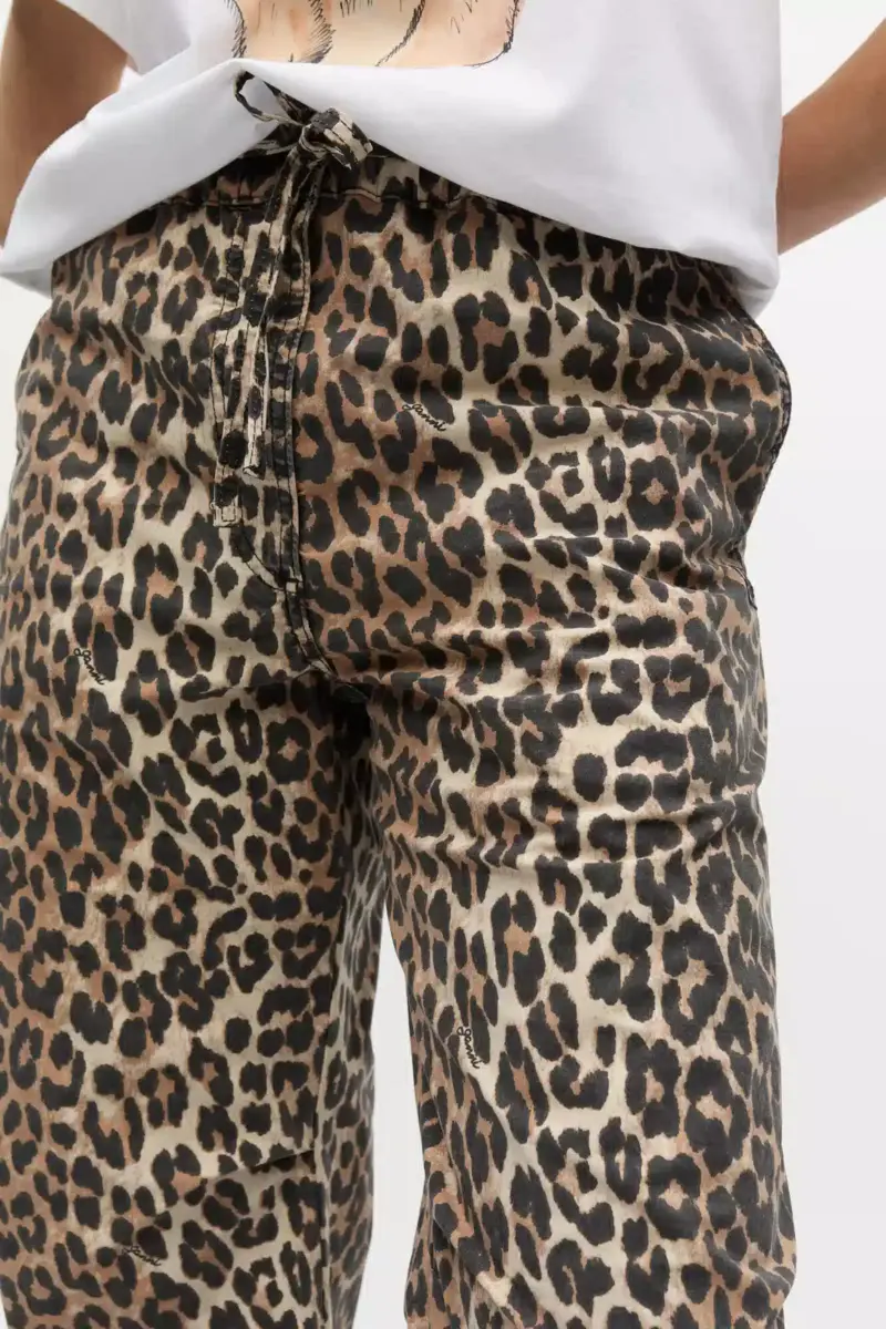 Washed katoenen canvas broek met trekkoord en luipaardprint