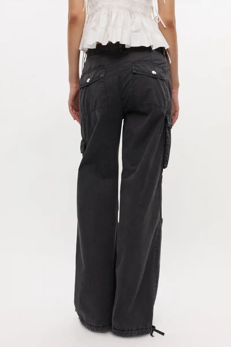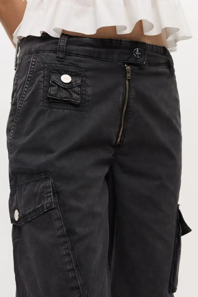 Deze broek heeft riemlussen, een ritssluiting met knoop, een klein zakje aan de voorkant, twee cargozakken aan de zijkant, achterzakken en een trekkoord aan de enkels.