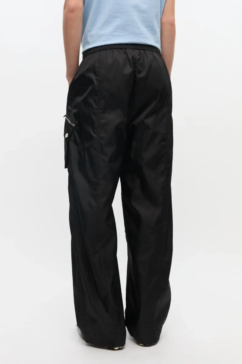 Zwarte nylon broek met elastische tailleband