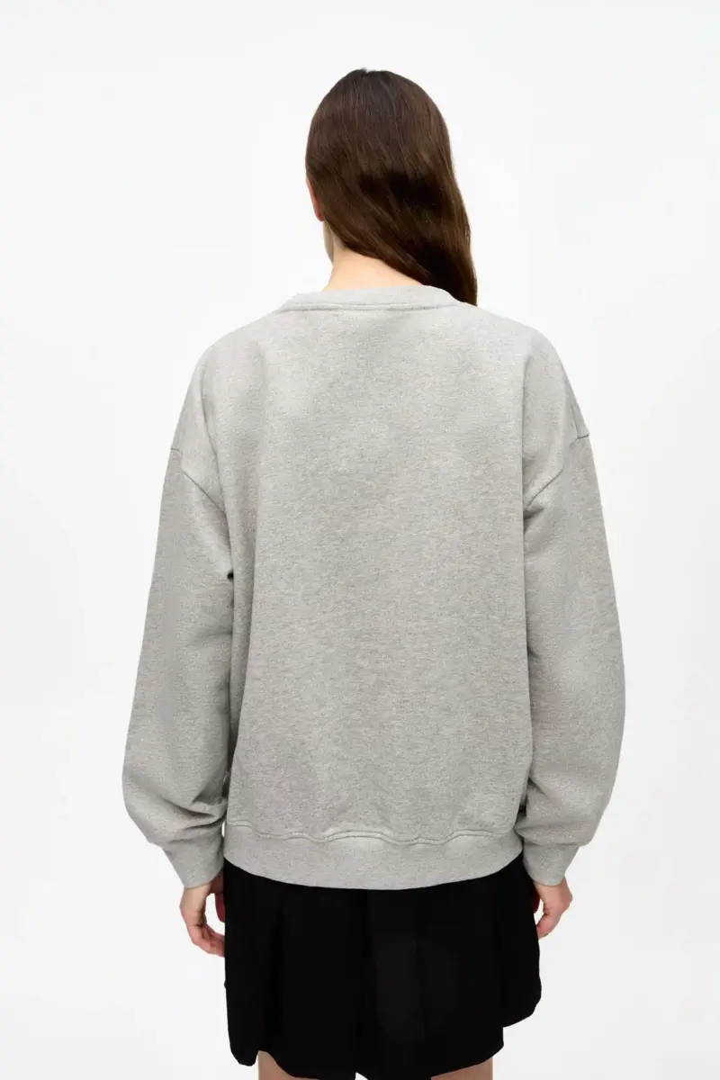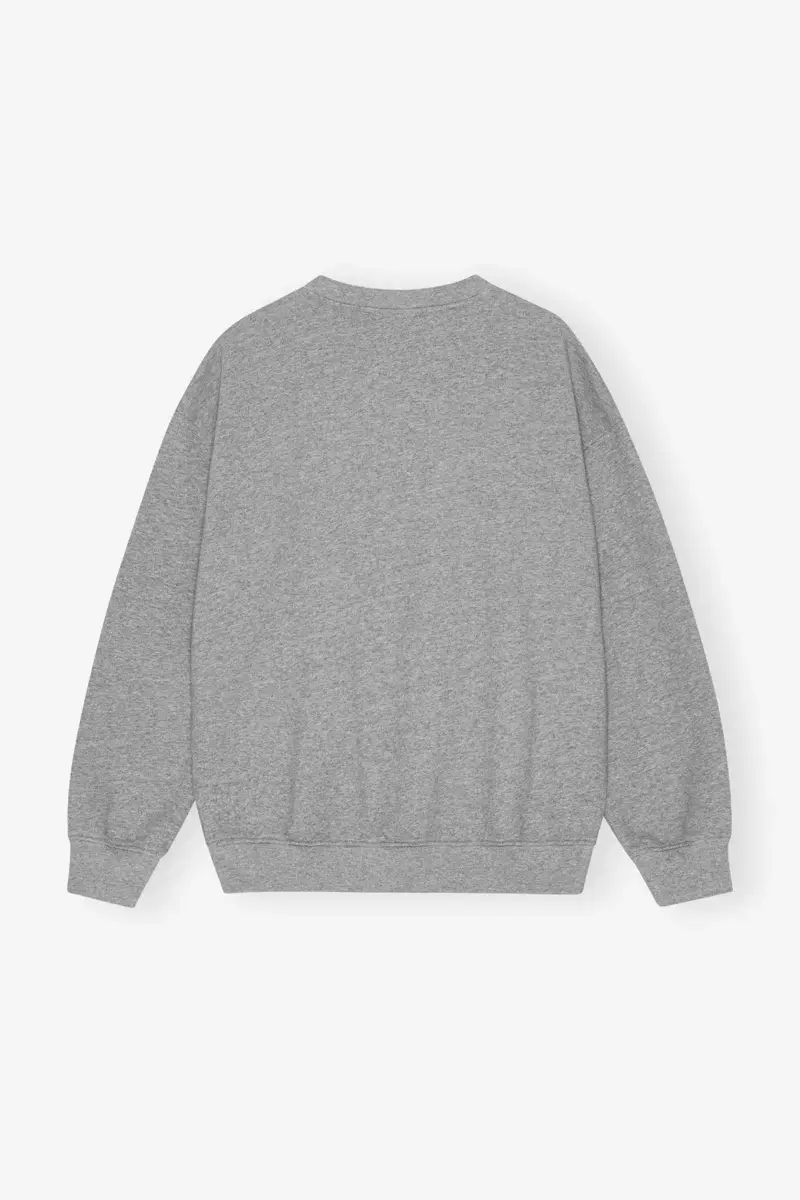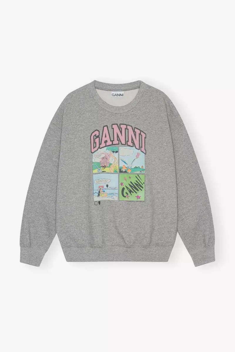 Dit grijze oversized sweatshirt van Isoli heeft een ronde hals en lange mouwen. Het sweatshirt heeft geribde boorden en een grafische GANNI-print.