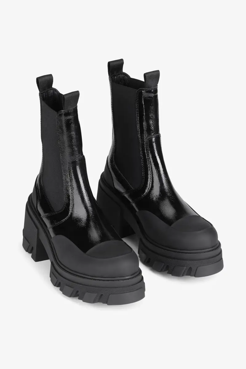 Deze laarzen zijn voorzien van elastische panelen, neusdetails, treklipjes, dikke profielzolen en een subtiel GANNI-logo.