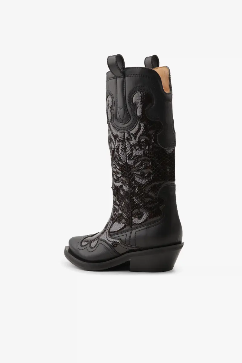 Middenhoge westernlaarzen met borduursel in bordeauxrood