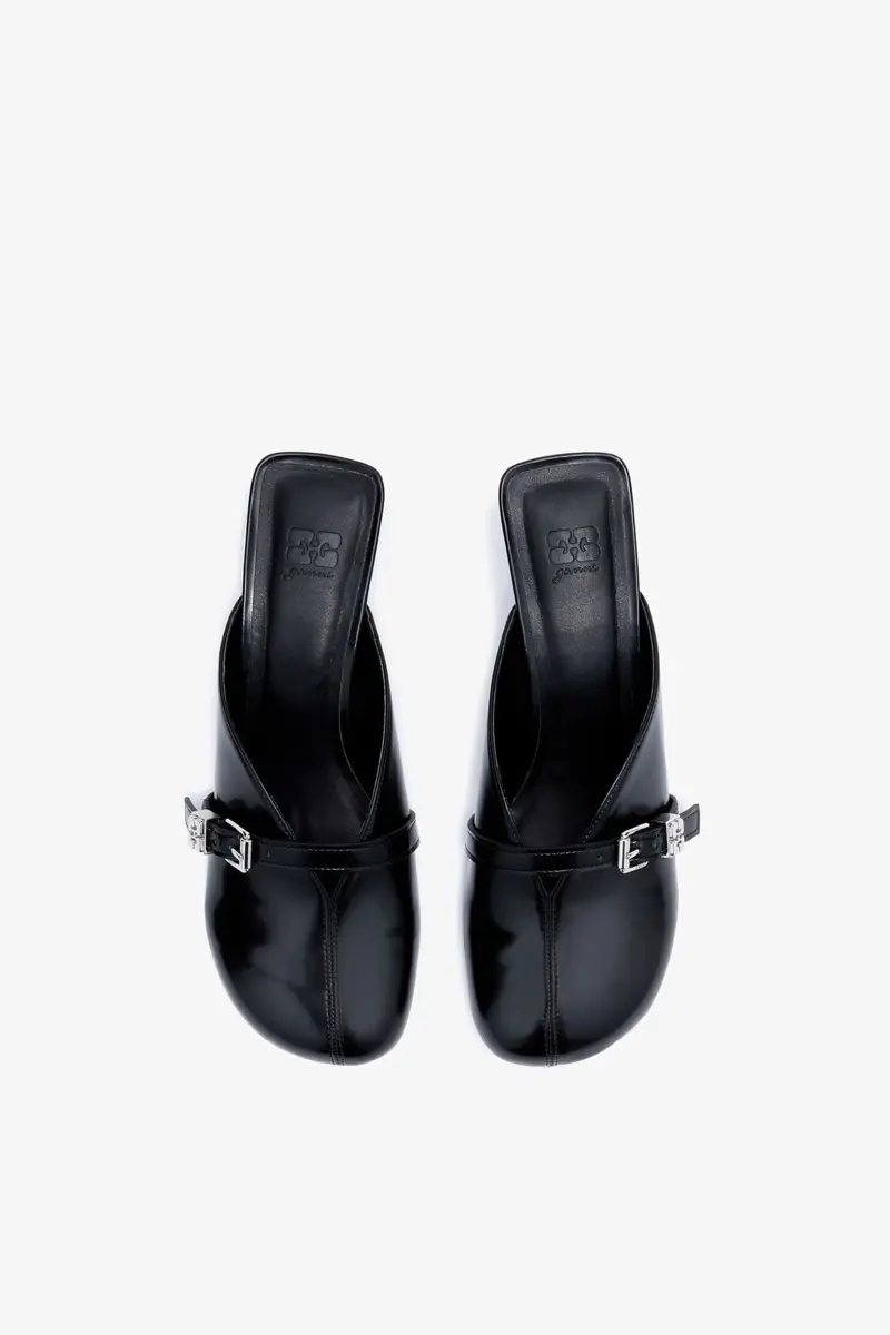 Deze hakken hebben een mule-ontwerp, een ronde neus, een v-vormige wreef en een gesp met het GANNI Butterfly-logo.