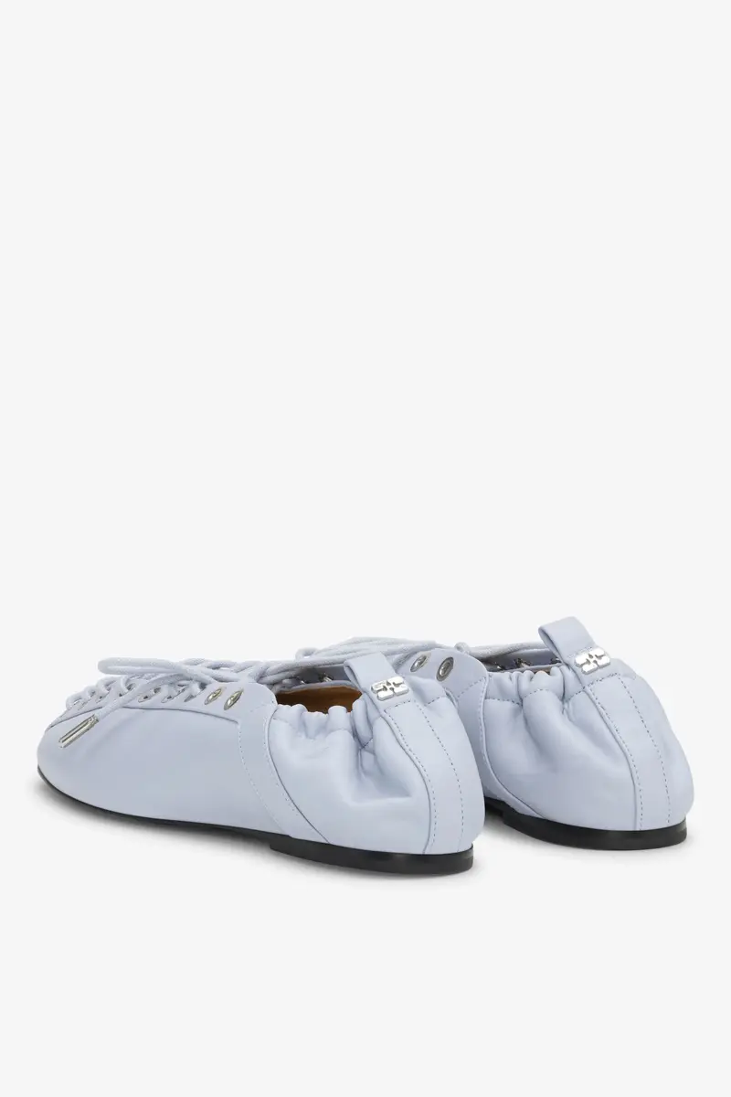 Deze ballerina’s zijn voorzien van kenmerkende metalen oogjes en gekruiste waxveters die aan de voorkant worden vastgeknoopt, zodat ze gemakkelijk aan te trekken zijn.