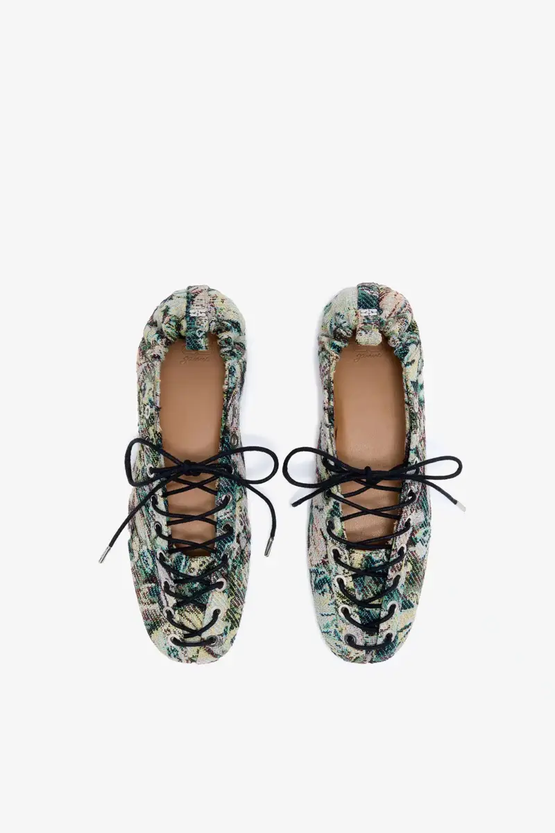 Deze ballerina’s met veters zijn geïnspireerd op de veterlaarzen uit de jaren 20 en bouwen voort op de traditie van onze geliefde Buckle Ballerina. Deze ballerina’s zijn voorzien van kenmerkende metalen oogjes en gekruiste waxveters.