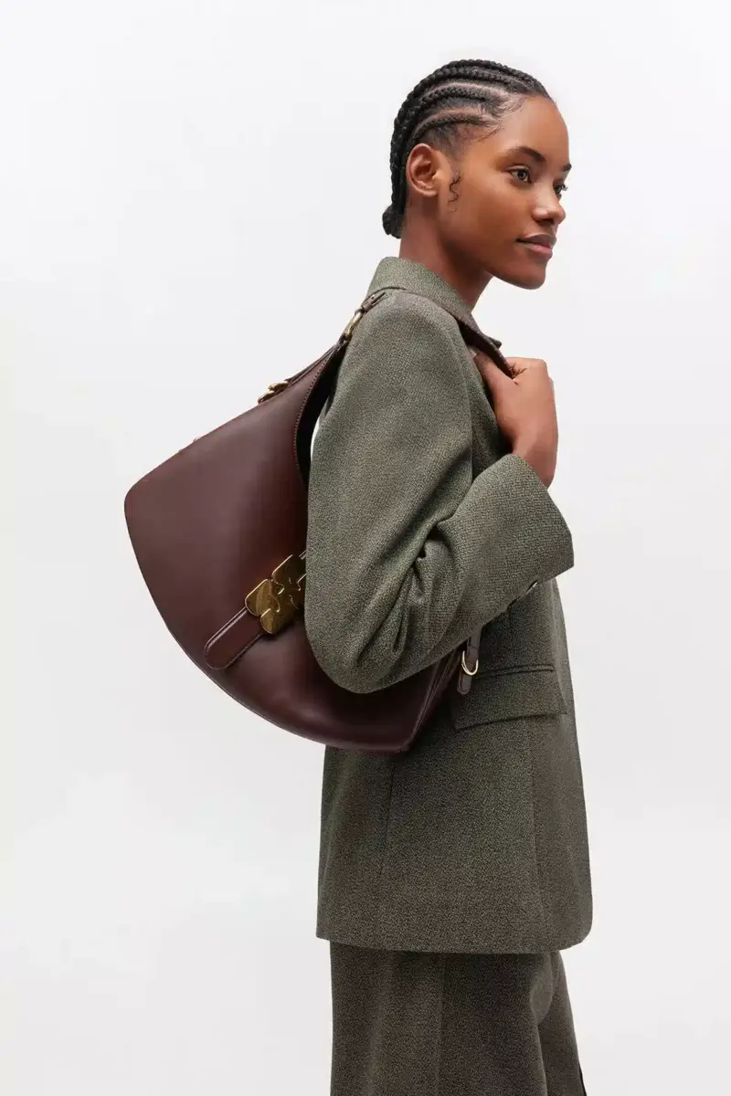 Deze tas heeft een accordeonvormig silhouet, een schouderriem en D-ringdetails aan de zijkant. De tas heeft een sluitlip met de kenmerkende GANNI Butterfly-sluiting in goudkleur, 1 ma