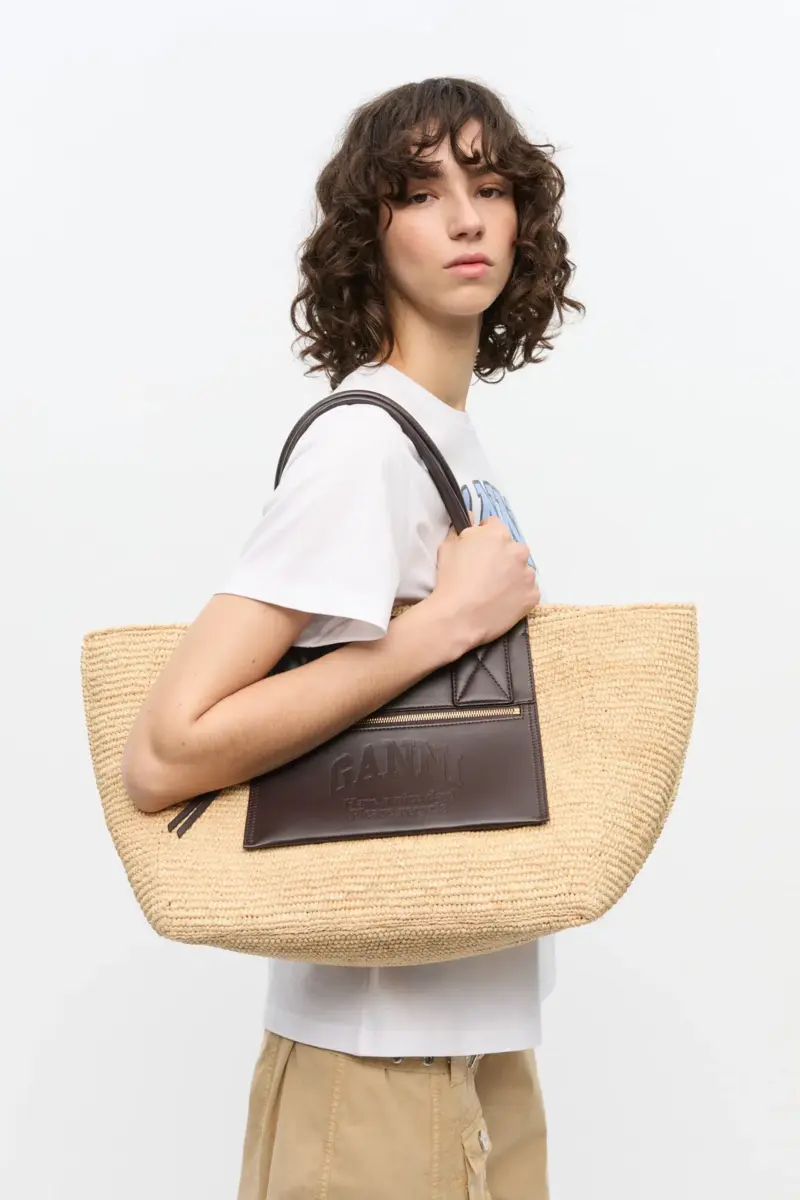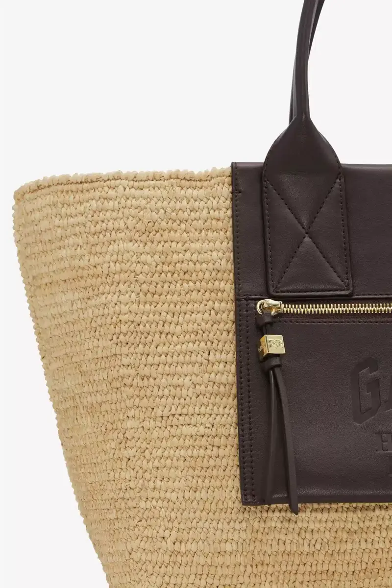 Bruine medium raffia draagtas