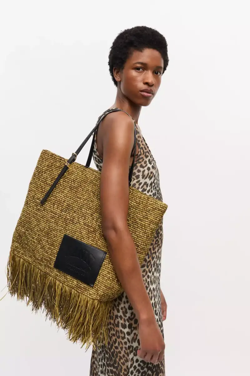 Raffia draagtas met franjes