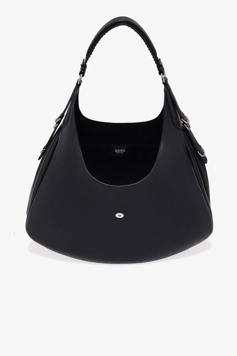 Deze tas heeft een accordeonvormig silhouet, een schouderriem en D-ringdetails aan de zijkant. De tas heeft een sluiting met het kenmerkende GANNI-vlinderslot in zilverkleur, 1