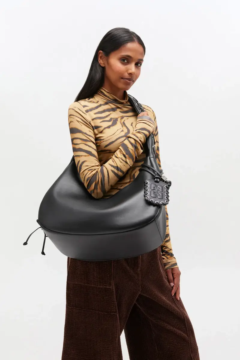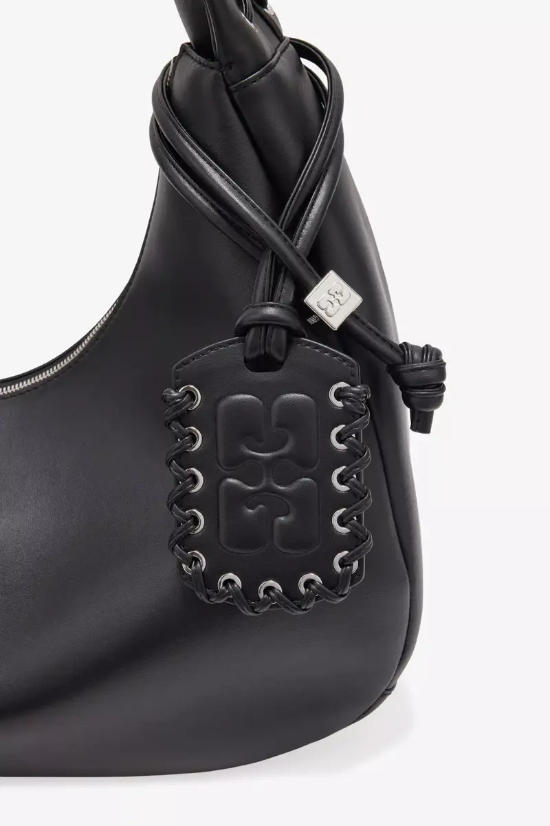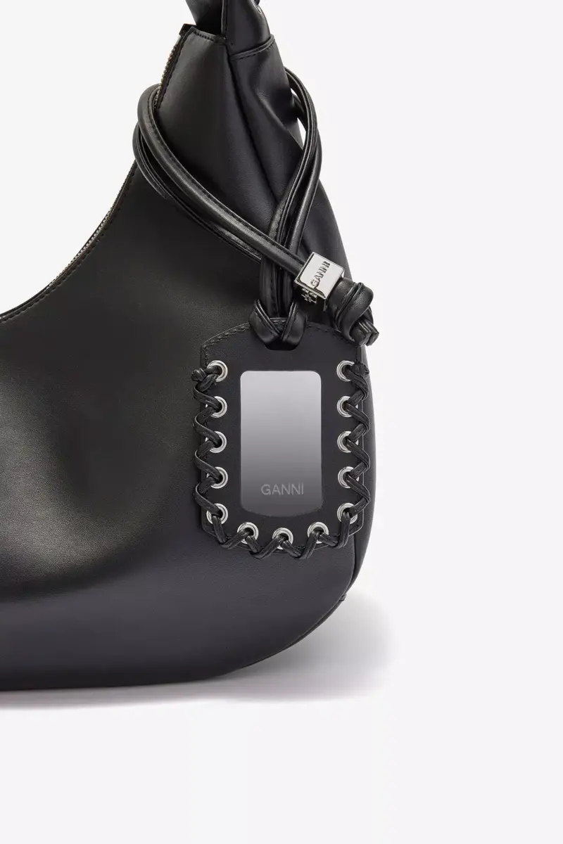 Deze tas heeft een schouderriem, een ritssluiting en een GANNI-vlinderlogo in dezelfde kleur. De tas heeft een spiegelhangertje en een binnenvak met ritssluiting.